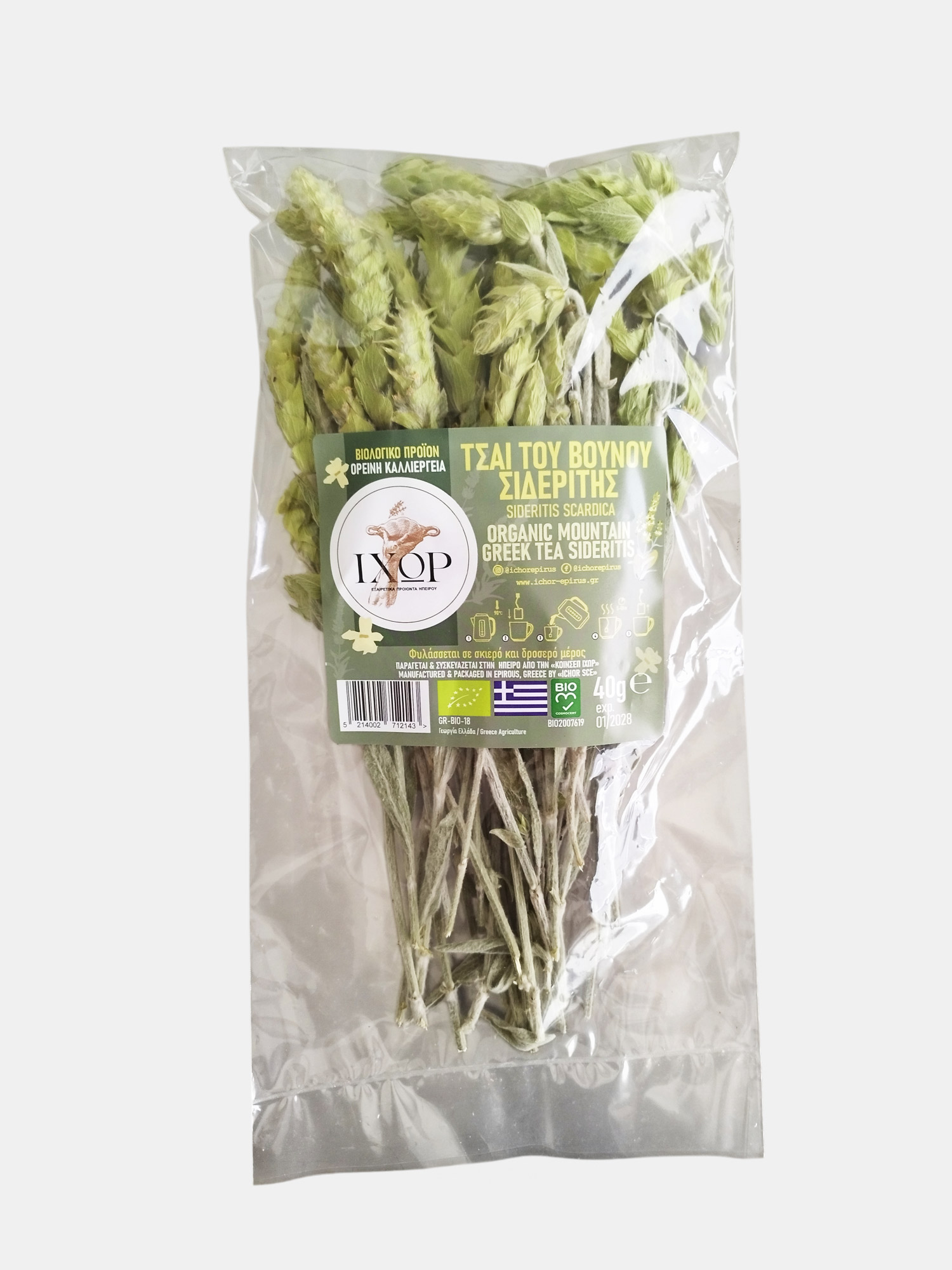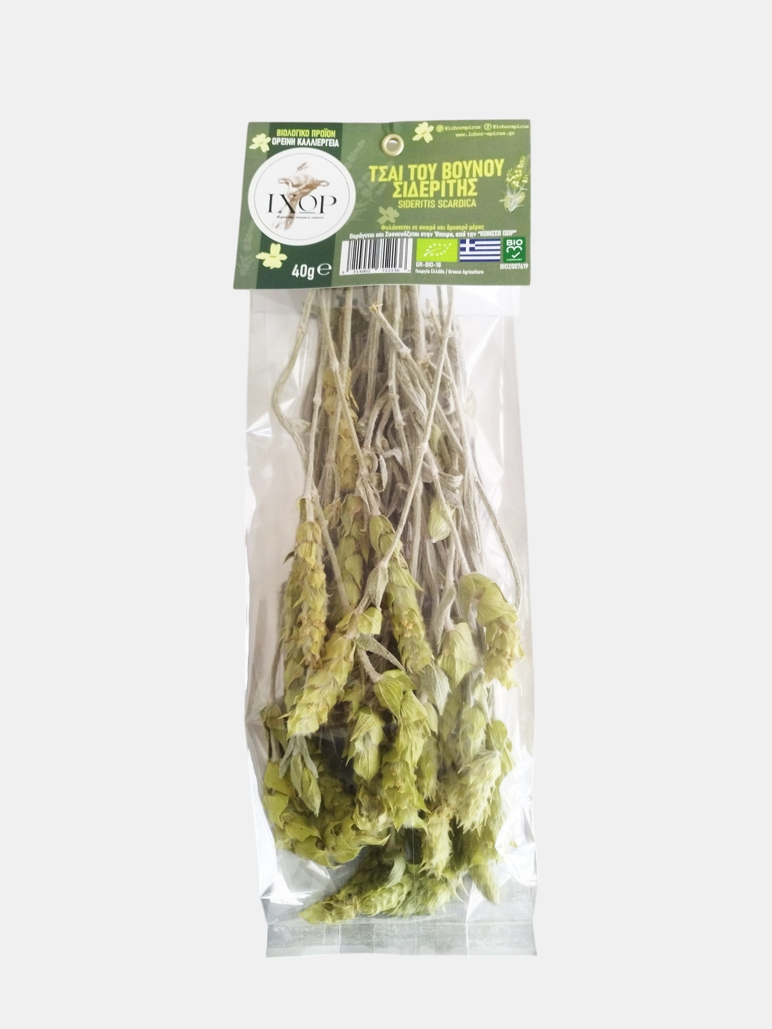 Βιολογικό Τσάι του βουνού ποικιλία sideritis scardika από τις ορεινές περιοχές της Ηπείρου. Άνυδρη καλλιέργεια. Οι καλλιέργειες των αρωματικών φυτών της «ΙΧΩΡ» είναι άνυδρες και βρίσκονται σε μεγάλο υψόμετρο σε εδάφη παρθένα. Αυτό κάνει τα προϊόντα μας εξαιρετικά και πλούσια σε αντιοξειδωτικές ιδιότητες. Η κοινωνική συνεταιριστική επιχείρηση παραγωγών Ηπείρου «ΙΧΩΡ» εδρεύει στα Ιωάννινα και ασχολείται με την παραγωγή  αρωματικών και φαρμακευτικών φυτών αλλά και άλλων τοπικών προϊόντων της Ηπείρου.